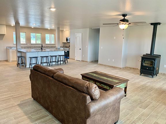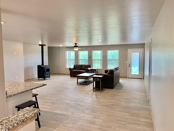 This new constructed home of 3 bedrooms & 3 baths on 8 acres m/l is less than 10 miles to Ponca, AR and the Buffalo River. Enjoy the numerous hiking trails, bike trails, canoeing, and sightseeing areas in Ponca. Look out over the 80 fruit trees that were recently planted and the large pond while sitting on the covered back porch enjoying the scenery and wildlife. The kitchen features granite countertops, extra large island with bar stools, appliances and a big pantry. All easy to clean tile floors, split floor plan and lots of windows. The master bedroom has two walk-in closets and a large bathroom. The wood burning stove can also use coal pellets. Oversized two-car garage with keyless entry, water hookups and electric.