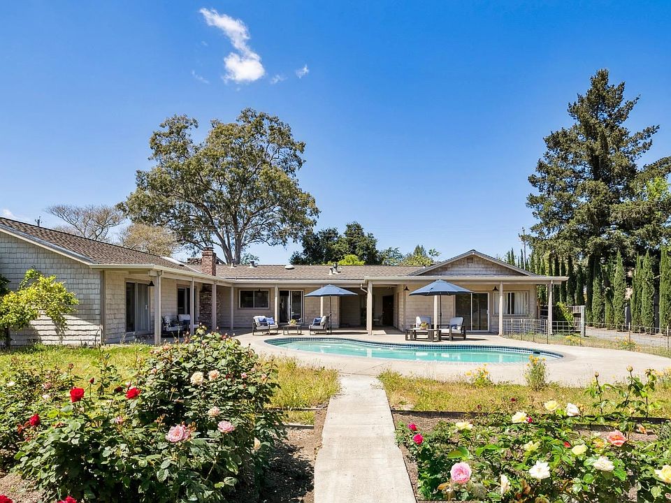 Perfectly positioned on one of Napa Valley's most coveted streets, this single level ranch style home enjoys sweeping vineyard vistas and mountain views on approximately 1.3 acres, just minutes from downtown St. Helena. The 3,800 sq. ft. residence features four bedrooms and four full bathrooms, a vaulted ceiling living room with fireplace, formal dining room, and a kitchen with breakfast area that opens to a spacious family room with a second fireplace. Outdoor living is highlighted by a solar heated pool, and one car garage. A separate ADU unit with hardwood floors, walk-in closet, and full bath provides flexibility for visitors or rental use. Zoned LR-1A with city sewer connection available and potential eligibility for an Urban Lot Split, this property offers a rare opportunity to enjoy the heart of wine country, moments from Crane Park and with easy access to Calistoga, Yountville, world class restaurants and wineries!