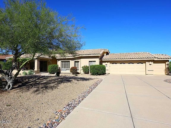 Beautiful spacious home in the Rio Verde Active Adult Golf Course community on a private lot with golf course at both ends of the lane. In addition to a large kitchen with a breakfast room overlooking the covered patio and lovely backyard, it has a separate dining area all of which open into the large living room with fire place. The living room opens out to a large front patio through double sliding doors. In addition to the primary and guest bedrooms at the other end of the house there is also a large den/office area with a sleeper sofa between the living space and the bedrooms. Inside laundry plus the 2 car garage and golf cart garage complete the space. Rio Verde has 2 restaurants,, pickleball, tennis, and bocce ball courts as well as bicycle and hiking clubs.