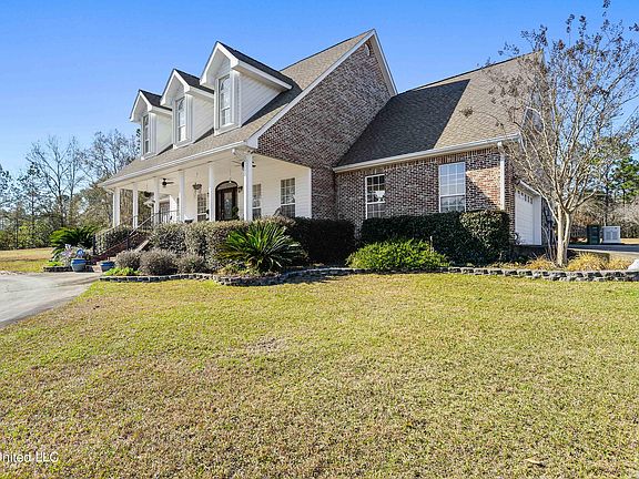 Gorgeous, stately, southern home in Pine Ridge Estates subdivision on 5.4 acres of land with 3,000+ square feet of living space, new stainless appliances, propane tank for fireplace and gas stove, new Generac backup generator, 5 bedrooms (primary and guest bedroom on ground floor), large primary en suite, bonus office space and large utility room. Tons of natural light floods this beautiful home that is turnkey and ready for its new owners! Detached carport/garage/workshop and stocked pond! This is country living at it's finest and only 20 minutes to Sam's Club or 30 minutes to the beaches/casinos. Located in the Harrison Central High School District. Make an appointment to see this gem today!