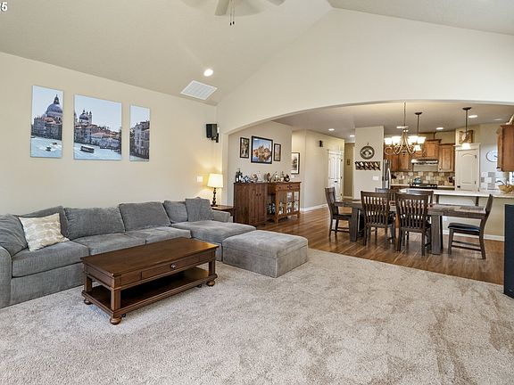 This elegant one-level home is thoughtfully designed with everyday comfort in mind! The heart of the home is the open-concept great room, which features a well-appointed kitchen that flows into the dining and living rooms with vaulted ceilings and a gas fireplace. This is the perfect setup to entertain guests, host holiday dinners, or simply relax at the end of your day. Three bedrooms and a flexible office/den provide plenty of space for guests, hobbies, or a quiet retreat. Tucked into the back of the home, the primary suite is a private sanctuary with a walk-in shower, dual sinks, and a spacious walk-in closet. Enjoy the rare oversized three-car garage for all your vehicles, tools, or recreational gear. The sunny backyard is designed for low-maintenance living, with a charming pergola for outdoor dining or unwinding in the fresh air, and a newer Tuff shed for extra storage. Located on a quiet street with no HOA, just blocks from Chapin City Park and two miles from downtown Oregon City’s shops and restaurants, you’ll love the mix of peaceful neighborhood living with easy access to local amenities.
