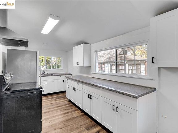 Vintage charm with built in cabinets and nooks, Updated kitchen and bathrooms. Roof is only 8 years old! Kitchen has stainless fridge and dishwasher, dual sink, granite countertop and dining area with lots of windows. Dual Pane windows throughout! One bathroom has a shower over jetted tub, master has shower. Wood stove in roomy living area. Interior laundry room with washer and dryer. Rear deck and lots of yard.
