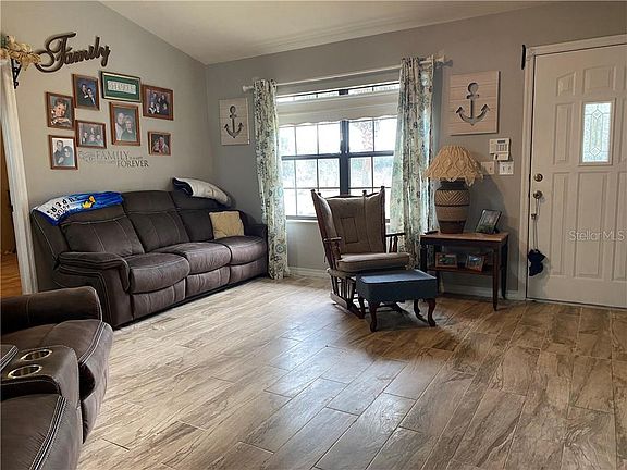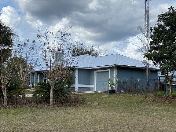 Block Stucco Home on 3.25 Acers on Paved Rd. Concrete driveway. New Metal Roof 2020 Solar water heater. Large screened back porch 28 x 16 attached 1 car garage but wait pole structure behind the house for multiple vehicle storage 40 x 31 Metal Roof open sides. Plus a large metal building with efficiency, loft storage and garage bay area. 40 x 24 x 20 foot tall completely enclosed and 40x32 two bays one metal for RV parking and one wood for equipment or possibly stalls. Home is modern open floor plan volume ceiling Kitchen open to family room. Split bedroom plan.