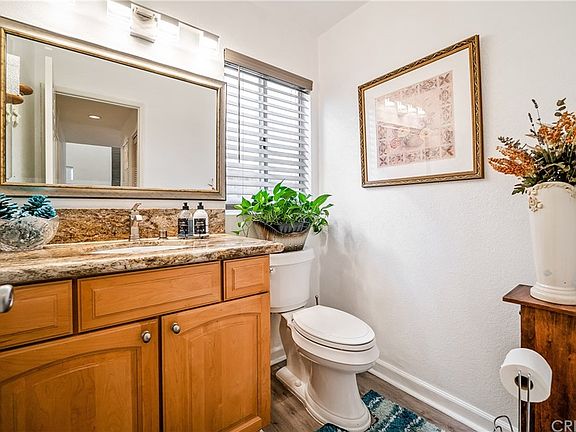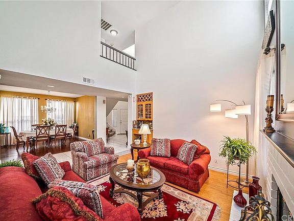 Spacious home in the private Shangri-La neighborhood collection of homes, with great features throughout. Entertain in a formal two-story tall ceiling living room with dry bar and fireplace, formal dining room, family room with fireplace, eat-in kitchen with granite counters, Thomasville maple cabinets, stainless steel appliances. Upstairs features large master suite with walk-in closet, sitting room and exterior deck with expansive views to the west. Master bath has dual sinks, large soaking tub and shower. Two more secondary bedrooms and a large bonus room, which is easily converted to huge bedroom. There is a shared deck off the bonus and front bedroom with city views to the east. The backyard features a tranquil and very private brick-ribboned patio with lush greenery and patio cover. Not only are assigned schools highly ranked, but the property is conveniently located near shopping plazas, Costco, Starbucks, two movie theaters, restaurants, gym, and much more! NO MELLO-ROOS.