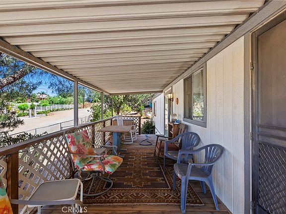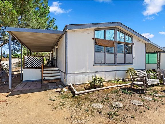 Discover the perfect blend of affordability and charm in Woodcrest, Riverside, CA! This must-see 2 bedroom, 2 bath manufactured home offers a spacious and private retreat on a large 31,363 sq ft. fenced corner lot. With 1,344 sq ft. of living space and a permanent foundation, this home ensures stability and comfort without breaking the bank. Step inside and be welcomed by the bright and airy living areas, flooded with natural light that creates a warm and inviting atmosphere. The well-designed floor plan seamlessly connects the living room, dining area, and kitchen, making it an ideal space for entertaining guests or enjoying cozy evenings at home. The kitchen boasts ample cabinetry and a convenient breakfast bar, providing functionality and style. As you prepare delicious meals, take in the picturesque views of the surrounding hills through the kitchen window, adding a touch of tranquility to your culinary experiences. The two spacious bedrooms provide a tranquil retreat, and the master suite features an en-suite bathroom for added convenience. Embrace the outdoors in the expansive fenced corner lot, providing ample space for outdoor activities, gardening, or simply basking in the sunshine. Additionally, the 720 sq ft. oversized detached garage offers abundant storage space or can be transformed into a workshop for your projects and hobbies. One of the highlights of this home is the breathtaking views of the surrounding hills, serving as a picturesque backdrop to your daily life. Imagine starting your day with a cup of coffee on the porch, or hosting gatherings in the backyard, where the beauty of nature is always within sight. Situated in the desirable Woodcrest area, this property offers a peaceful and rural suburban lifestyle while remaining conveniently close to schools, shopping centers, restaurants, and parks, ensuring easy commuting and access to amenities. Don't miss out on the opportunity to make this affordable manufactured home your very own. With its spacious lot, oversized garage, and captivating views, it presents a unique combination of comfort and serenity. Schedule your private tour today and envision the possibilities of living in Woodcrest, Riverside, CA!