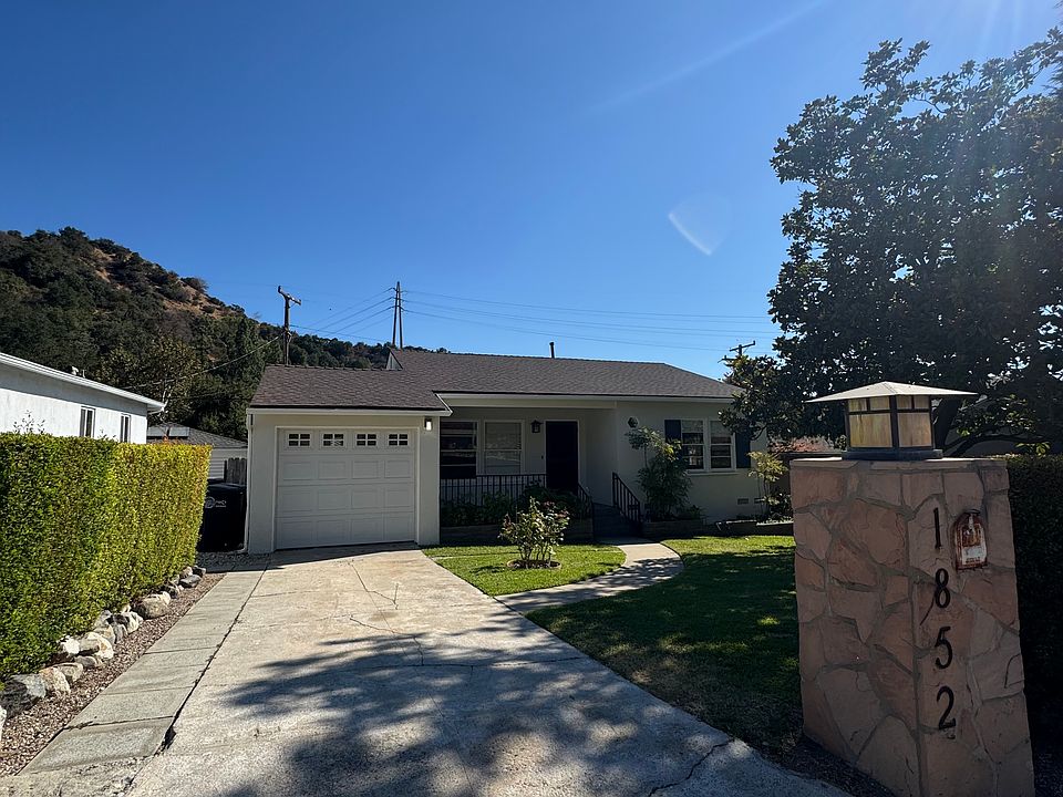 Welcome to 1852 Alpha Rd, a beautifully remodeled cottage in Glendale's highly sought-after Verdugo Woodlands. This charming home features new laminate floors, classic wood windows that fill the space with natural light, and an oversized kitchen with granite countertops, tile flooring, and a wall of glass opening to a romantic covered patio with serene views. Offering two spacious bedrooms plus a versatile den that can serve as a third bedroom or office, the home also includes a full bath and a private primary bath. The private backyard is a true retreat with a lush lawn, mature trees, and garden areas, perfect for entertaining or relaxing outdoors. Additional highlights include central air and heating, an attached garage, laundry area, and extra storage. Situated in one of Glendale's most desirable areas, this home combines peaceful living with convenient access to shopping, dining, freeways, and top-rated schools including Fremont Elementary, Rosemont Middle, and Crescenta Valley High.