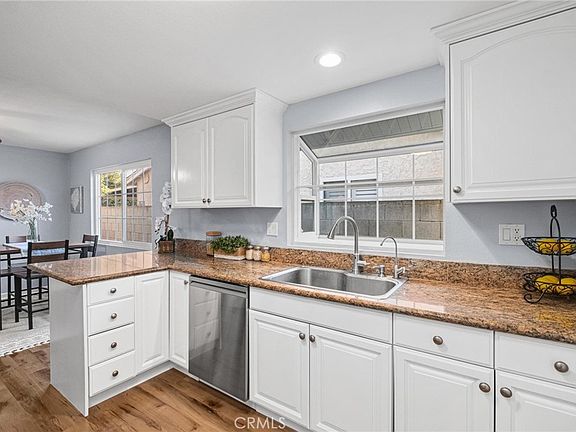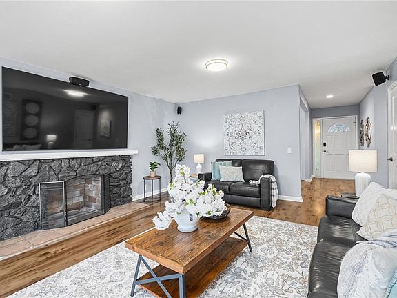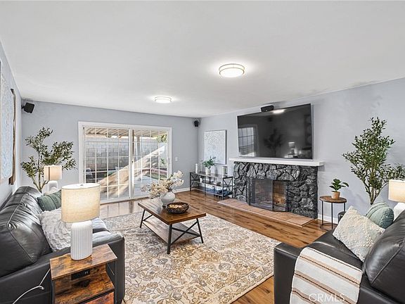 Smart home features set this property apart, with a NEST thermostat and central A/C, Blink cameras, Ultraloq keyless entry systems, and a NEST Protect smoke and carbon detector in the kitchen—it is set up to offer both convenience and peace of mind. The stone-faced fireplace anchors the spacious living room, ready to frame up to an 85" TV, while pre-mounted Klipsch 5-point surround sound speakers will turn any movie night into a theater-like experience. The primary suite features a custom closet system illuminated by LED lighting and classic plantation shutters. Each additional bedroom is generously sized, offering flexibility for a home office or guest room. The thoughtful upgrades extend throughout the home, including a new water heater (2024) and a newer Maytag washer/dryer set, ensuring you can move right in without lifting a finger. Step outside, and you’ll discover enough room to create an entertainer’s dream—an oversized covered patio ideal for al fresco dining, and an expansive, pool-sized backyard perfect for gatherings. The Wyze smart sprinkler system ensures that your lawn remains lush with minimal effort, and the oversized 2-car attached garage provides ample storage for your weekend toys. Every inch of this home reflects a well-loved property. Don't miss this rare opportunity to own a turnkey, modern home that combines timeless charm with the latest conveniences! Close to main commuter routes along the 110 and 405 freeways, plus minutes away from all your local favorites like Target, Aldi, IKEA, the movie theatre, the local golf course, the Dignity Health Sports Complex, and the CSU campus, it’s an ideal, central location.