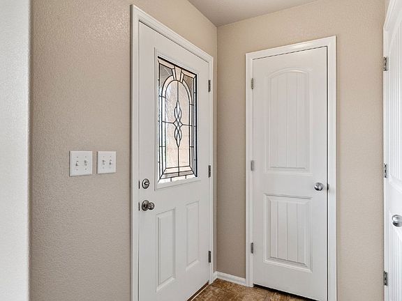 Step inside to a bright and airy open-concept layout featuring large windows that fill the home with natural light and provide unobstructed views of Pikes Peak and the Front Range right from your front door. The main level features durable vinyl plank flooring throughout, a spacious half bath for guests, and a generous eat-in kitchen complete with a kitchen island, walk-in pantry, double sink vanity, and a full stainless appliance package including a dishwasher, microwave, refrigerator, stove and oven, and garbage disposal.