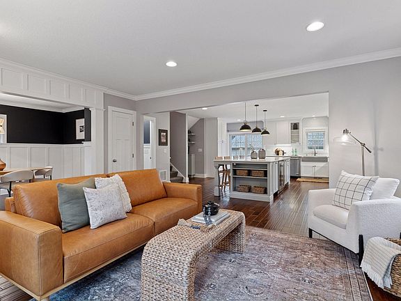 Almost entirely rebuilt in 2016 and enhanced with a series of remarkable upgrades, this Mac-Groveland home lives like high-end new construction—thoughtfully designed, beautifully finished, and exceptionally functional. The open main level centers on a stunning kitchen with an expansive Cambria island, JennAir appliances including a commercial-grade gas range and built-in refrigerator, and layered lighting that elevates both cooking and entertaining. Every space feels connected and intentional, from the inviting living and dining areas to the well-planned mudroom and patio doors leading to the cedar deck. Upstairs, the primary suite feels like a boutique retreat with an expansive custom closet system and a luxurious bath with a double vanity and frameless glass shower. Two additional bedrooms, a beautiful second bath, and an efficient, well-appointed laundry room complete the upper level. The lower level includes a compact family room and utility area, along with a clean, well-lit crawlspace with vapor barrier that offers practical storage without unnecessary maintenance. The three-car garage is extraordinary—two separate, fully finished spaces, each insulated and climate-controlled with its own HVAC system, recessed lighting, and loft storage above. A fully paid-off All Energy Solar array provides ongoing utility credits. With high-quality materials, modern systems, and thoughtful design throughout, this home delivers the sophistication of new construction at a rare value.