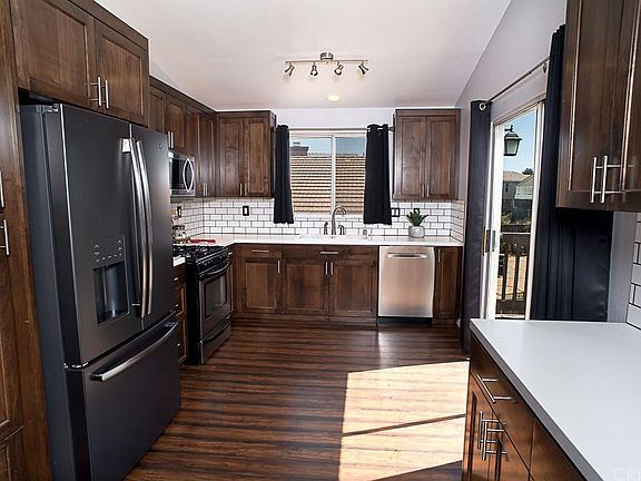 Life is lovely in this 4BR/2+BA home with easy-care landscaping, located nearby shops, restaurants, and freeway. Ideal features such as an attractive pool, newer custom kitchen with built-in microwave, dishwasher and amazing deck off the kitchen overlooking the backyard and pool. Private driveway with an attached 2 car direct access garage. Airy and bright floorplan, satisfyingly large rooms. Gracious family room, spacious great room with high ceilings, wood-like flooring, special custom touches. Fine master bedroom, en-suite bathroom, dual vanities. Rocking-chair front porch, drought-resistant landscape. Good size backyard with swimming pool and covered patio. Attractive home that handles all your needs.