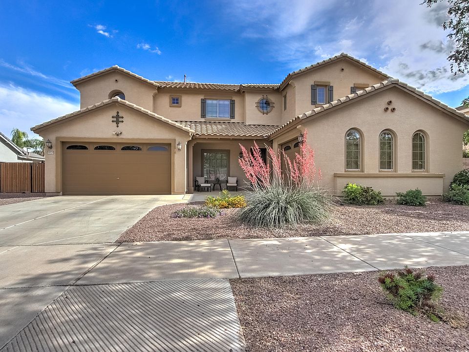 Beautifully updated in the highly desirable Cortina community. This home offers 5 bedrooms (full bedroom & bath downstairs), 3 baths and 2 loft areas. Stunning new wood-look tile, new carpet, fresh paint (inside and out), new granite, refreshed cabinets, new stainless appliances. The chef's dream with a gas cooktop and double ovens. The master boasts dual sinks, separate shower & garden tub and a huge walk in closet. Large, green grassy backyard beautifully landscaped with citrus trees. Enjoy the beautiful AZ weather from the cute courtyard in the front or the great covered patio out back. Close to shopping, dining, freeways, Mesa Gateway airport. Hurry before you miss out!