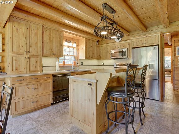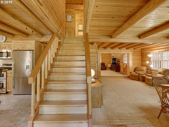 Come and get cozy in a rustic log home in Oregon City. This home features 2.6 acres, 3 beds, 2 baths, 2275 sqft, with the outside logs stripped and refinished in 2017, metal roof, new landscaping, 2 car garage, newer kitchen with SS appliances, fridge, washer and dryer included in sale. Enjoy the large family room that is great for entertaining. Sit out on the deck and enjoy the wooded views with peace and quiet.