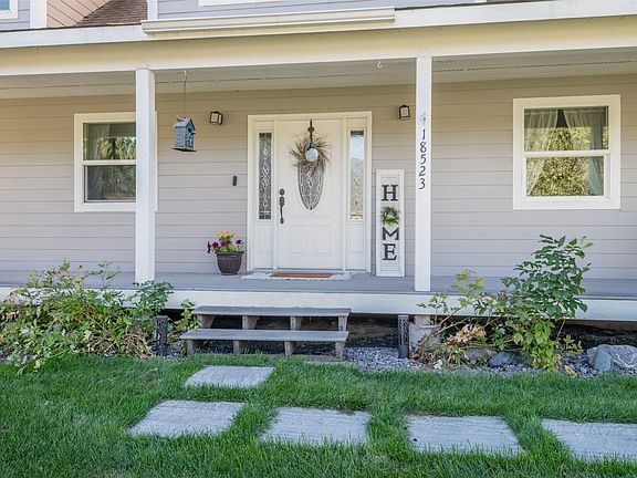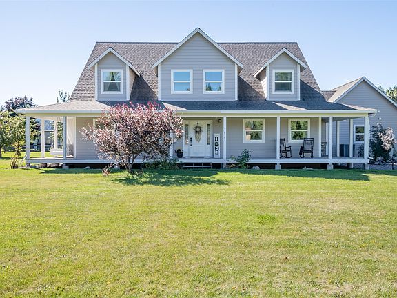 Back on the Market. Welcome to 18523 Mullan Road. Ready to go! You are going to love this modern farmhouse-style home situated on a full acre with mountain views in the coveted Frenchtown School District. A grand 2 story foyer welcomes you into your new home. The main floor features a large dining room surrounded by windows, a spacious living room with a gas fireplace and 2 sets of french doors leading to the back patio, a recently remodeled farmhouse kitchen featuring gorgeous maple countertops and a built-in breakfast nook that easily seats 8. The spacious, main level primary suite includes a double-sided gas fireplace, a generously sized closet with custom built-ins, a door to the private back patio and an en suite bathroom with double vanities, a whirlpool tub & separate shower. The mudroom/laundry room off the kitchen leads to the back patio as well as into the huge garage. The main floor also includes a full bath along with a bedroom/office/bonus room. Upstairs you will find a massive family/entertainment/game room as well as two more large bedrooms, both featuring ensuite bathrooms. Outside boasts a spacious wrap-around porch on the front and sides as well as a large front yard. The backyard is amazing and features ax expansive flagstone patio with a built-in outside fireplace. There is plenty of room to spread out, entertain and enjoy the views! Contact Laura Branson at 406.370.4063 or your real estate professional for your personal showing.