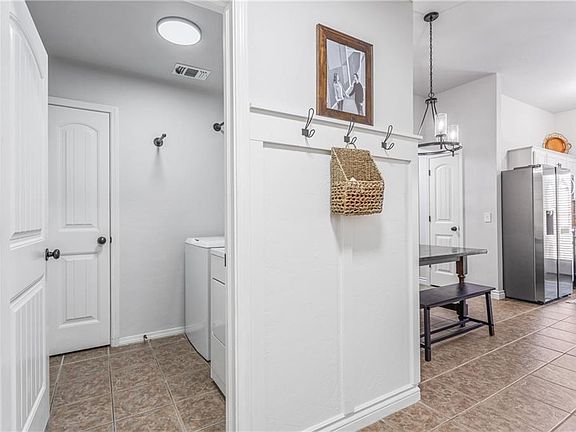 Don't miss this home in the Valencia Neighborhood of Edmond! Good size master bedroom with full bath & walk-in closet. The laundry room is directly across from the master for convenience and offers extra storage. The bright kitchen with pantry and dining area overlooks the living room and offers a great open space for entertaining and open concept living. The secondary bedrooms are off the kitchen and have a guest bath in between. Inground storm shelter in the garage. Very well taken care of home. Refrigerator, living room curtain rod & all curtains are reserved. Buyer to verify schools.