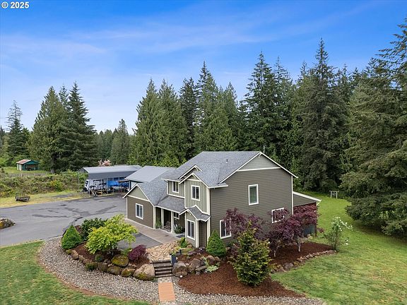 You know you are somewhere special when you see this home on Somewhere Lane. Far from everything, yet only 15 minutes to nearby shopping. Lift Master gated entrance with motion sensor; 5 flat acres with beautiful mature trees in front and behind the home, large circular asphalt driveway with paved entertainment area and gas fire pit; Generac Guardian whole house generator, RV and boat parking under 24x41 carport, lots of extra parking, fenced property; white vinyl fence front of property; 24x36 insulated shop with 2 insulated roll up doors w/remote, heated by pellet stove, shop also has massive 14x32 insulated finished loft and additional 16x24 covered lean to with cement slab floor;16x30 covered patio with all-weather adjustable shutters with slide track; New well pump (2023) and WellRight Tank (2022), WaterRight whole house water softener; insulated storage barn with double door access and loft; Invisible Fence; shooting range; 2 chicken coups with fenced free range area; fenced raised garden beds; entrance has covered porch, spacious engineered hardwood flooring (main level), granite and hickory cabinets throughout, vaulted great room and master bedroom; heartwarming Drolet wood burning stove nestled on whitewashed brick; large master on main floor has remodeled tile bathroom and walk in closet; also included with master are: attached closet units, shelving, dresser, TV, king bed, and nightstands; upstairs has laminate flooring, new carpet, and remodeled tile bathroom with dual sinks; all appliances are included plus washer and dryer.