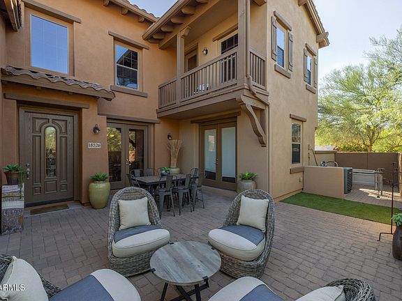 Step into this move-in-ready home designed for true Arizona living. Fully furnished with interior-designed furniture to complement the unique interior and size of each room. Featuring 3 bedrooms and 3 bathrooms, the home is thoughtfully crafted with multiple patios and a private balcony off the primary suite, creating a seamless indoor-outdoor flow perfect for enjoying desert evenings. Inside, the spacious family room with its cozy fireplace invites you to unwind. The kitchen features built-in stainless steel appliances and plenty of cabinet space. The primary suite offers a spa-like ensuite boasting a soaking tub, large shower, and dual vanities for the ultimate retreat. The garage was completely redesigned to maximize cabinet storage space and newly designed epoxy flooring. With abundant natural light, refined finishes, and a layout designed for everyday living, you will love this home!