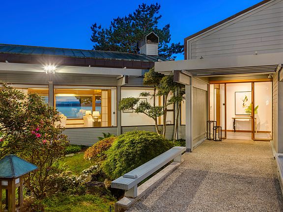 Normandy Park Coastal Estate. Positioned within a dream setting on Puget Sound with stunning water views that stretch all the way to the Olympic Mountains, this home was built during a bygone era that allowed for a backyard to kiss the high tide, all while the golden hour sets the home aglow Located on one of Normandy Park's most coveted streets, Normandy Terrace Southwest, this west-facing home enjoys 200 feet of spectacular low-bank saltwater beachfront. Boasting a spacious 5,900 square-feet, this residence was cleverly designed as a single-level home--truly a rare find. This slice of paradise was custom-built in 1982 on just shy of an acre and was substantially remodeled in 2015, ensuring the inclusion of state-of-the-art systems in harmony with modern and thoughtful style. Designed by Paul Hayden Kirk, whose designs have contributed to the region's modern architecture footprint, every detail was thoughtfully planned down to each finish. The four-bedroom, five-and-a-half-bath, single-story home boasts walls of windows throughout, while its placement ensures privacy of the highest measure, starting with a gated driveway. Follow the long private drive to its end, where you're greeted by just a piece of the lush landscaping that surrounds the property. Expansive doors greet you as you make your way along the long hallway of floor-to-ceiling glass. Each room of the house opens into the next with a shared sense of place and use of wood, stone, and glass, intended to accent the natural coastal landscape just outside. The exceptionally large living room is framed by shoji screens, and the lofted, beam ceilings throughout are grounded with long-grain fir wood accent. Designed for entertaining in any season, an open floor plan connects the kitchen, living, dining areas. The chef's kitchen includes professional-grade appliances, while the family room features a gas fireplace with a hearth crafted of raw-edged wood harvested from Normandy Park. Among the home's four bedrooms is an impressive master suite, located in its own wing of the home. Private double doors lead to the terrace while windows surround the substantial bedroom, all providing an unobstructed coastal view. With two walk-in closets and two master baths, including steam showers and a heated soaking tub, the space is perfect for creating a spa-like experience daily. The home is teeming with beautiful landscapes at every turn. At low tide, walk the beachfront as far as the eye can see--both to the south and to the north. In addition to the extraordinary stretch of waterfront, the garden courtyard provides ideal entertaining spaces. Accented with tranquil ponds and Japanese gardens, there is also a working greenhouse, vegetable boxes, and garden staging area. Among the home's diverse plantings one finds mature bamboo, redwoods, a Japanese black pine, blueberries, and an olive tree, while three stone fruit salad trees--producing apricots, peaches, and plums--are the focus of the garden courtyard. The home is complete with a private guest wing, where the sitting area opens to the garden terrace. Standout features of the home include a copper roof and gutters, whole house generator, in addition to many state-of-the-art upgrades. Additional features include blackout drapes throughout, a sauna, and a generous two-car garage with ample additional parking. The homeowners will enjoy the benefits of the private beach at Normandy Cove. Minutes to downtown Seattle and Sea-Tac Airport. Paradise awaits!