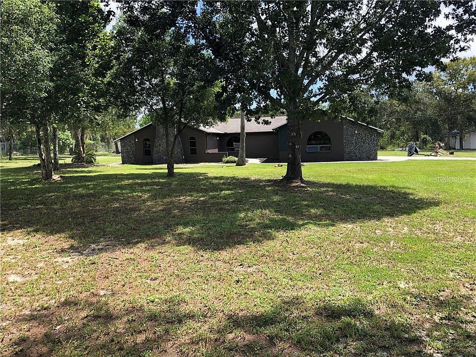 The homestead you have been looking for awaits you right here. 2.7 Acres of fenced property with a security entrance gate in this park like setting with all the privacy you can want is spectacular. The home features 3 bedrooms with 2 completely remodeled bathrooms in 2018 and ceramic tile throughout the home with laminate flooring in the other 2 bedrooms. Large living room with wood burning fireplace, formal dinning area and a huge family room opens up to the kitchen that offers plenty of counter space. The screened in back patio offers plenty of room for outdoor entertaining with an inground pool to swim and relax. In addition to the two car attached garage there is also an 1800 square foot drive through detached garage which is an amazing addition with unlimited potential. The property also has 2 additional sheds so storage will never be an issue. A must see property to be fully appreciated. Scheduled your showing today.
