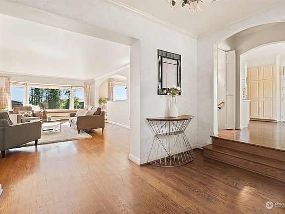Unwind in your private oasis, this gorgeous home nestled on a park-like 3/4 acre lot, just steps from the water in desirable Normandy Park. Imagine waking up to stunning sound views and natural light that abounds throughout this stately home. Main floor features a spacious primary suite, inviting living room w/ fireplace, large formal dining, eat-in kitchen, sun room retreat & add'l bedroom. Upstairs find a full bath & private bedroom w/ rooftop deck showcasing 270° mountain & sound views! Finished basement offers a separate entrance, full bed & bath, & expansive flex room + storage. This location can't be beat, w/ Lot A Cove Beach rights sweetening the deal. Don't miss this rare opportunity to own a Normandy Park gem. This is the one!