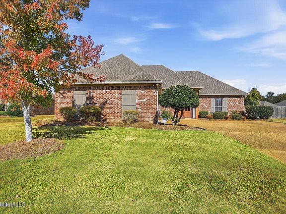 Great House with fully fenced back yard & window treatments! This split plan home has tall ceilings, wood/laminate wood (waterproof) flooring, granite counters throughout and an office. There are double wood front doors leading into the foyer. The family room and kitchen are an open plan with large windows across the back and have access to a covered back patio. The kitchen has beautiful granite counters, gas cooking, stainless appliances, plenty of cabinet space and a walk in pantry. The Master bedroom has a tre' ceiling & is very spacious. The master bath has a double vanity, whirlpool tub, separate shower, private water closet, and a nice walk in closet with built in shelving. Bedrooms 2 & 3 are both 11'x11' with good closet space. There is a hall bath that also has good cabinet space. There is an office, a great ''mud'' area when you come in from the garage. Items that will remain with the property include the refrigerator, washer, dryer, shed, and vegetable planter. Multiple fruit trees in the backyard (pear, peach, plum & apple). The neighborhood has a club house and pool. Madison County School District and quick access to the interstate!