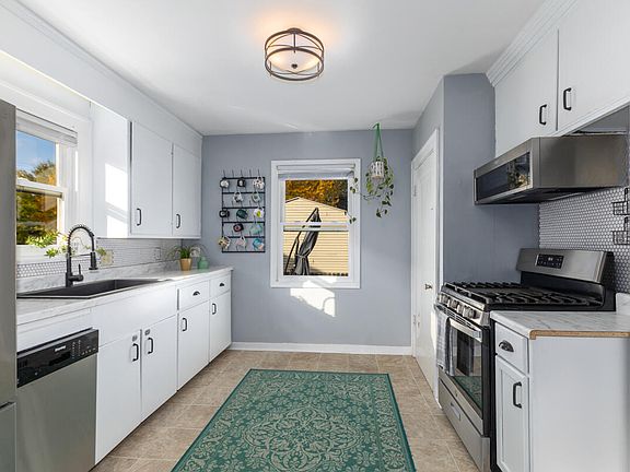 This charming 3 Bed, 1.5 Bath bungalow at 1853 Berkey Ave SE expertly blends its historic character with significant modern updates. The main level features refinished hardwood floors and an updated kitchen with white cabinetry and stainless steel appliances.