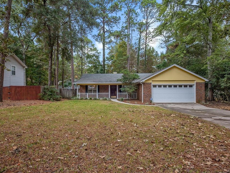 A Rated Schools for this split floor plan home in lovely Killearn Lakes! No Carpet to be found with either engineered wood or tile floors. Rocking chair front porch welcomes you into combination living room/dining room with soaring cathedral ceiling and wood burning fireplace. Kitchen features pass through to keep the conversations going! Spacious owner's suite with walk in closet, updated tile walk in shower, quartz vanity, and tile floors. Out back you'll find a private fenced yard and spacious deck to entertain.