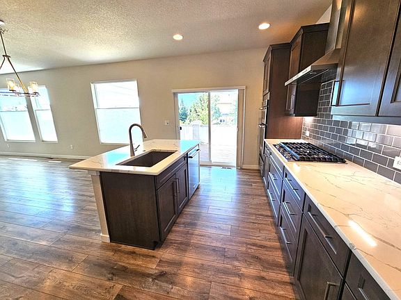 Lovely 2-story home that includes: 5 bedrooms, 4 bathrooms, oversized 3 car garage, formal office, upstairs loft, stucco/stone exterior, covered front porch, mountain views, custom cellular blinds, and the list goes on and on. The kitchen features designer 42" cabinets with crown molding, quartz countertops, stainless steel appliances (including a gas cooktop), subway tile backsplash, brushed nickel hardware, single basin kitchen sink, and a walk-in pantry. Main-level mudroom, wood shelving, smart home features including lighting, thermostat, and garage door controls, internet hardwire cabling throughout all levels, and custom black iron balusters adorn all staircases. Central air conditioning, humidifier and two gas fireplaces. Upstairs is the primary bedroom with attached suite, 2 secondary bedrooms, a full bathroom, a loft, and an oversized laundry room. The finished garden-level basement extends livability with 2 additional bedrooms, wet bar rough-in, full bathroom, and a spacious family/rec room. The landscaped exterior is filled with perennials/grasses, shrubs, trees, a butterfly garden, 3 raised garden beds, 3 sprinkler zones, a water fountain, and landscape lighting. Nestled on a cul-de-sac in the Flying Horse Palermo community and conveniently situated near parks, D-20 schools, recreational facilities, shopping centers, restaurants, military bases, and entertainment options, this home offers the utmost convenience.