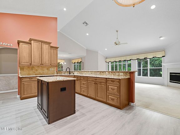 Located in the prestigious Community of Eagle Harbor in Fleming Island, this custom home sits on the award-winning Eagle Harbor golf course with serene views of the 17th hole & unmatched privacy. Offering two spacious owners' suites, a third bedroom and bath, and a stunning solarium surrounded by conservation, this home blends luxury with tranquility. The open concept kitchen features solid wood cabinetry, granite counters, and gourmet appliances. Additional highlights include two large climate-controlled storage rooms or workshops, a 3-bay courtyard-entry garage perfect for two cars and a golf cart, and recent upgrades including a newer roof, HVAC, water heater, gutter guards, and pavered drive. Enjoy access to Eagle Harbor's award-winning amenities—pools, boating, tennis, pickleball, trails—and top-rated Clay County schools, all with low HOA/CDD fees.