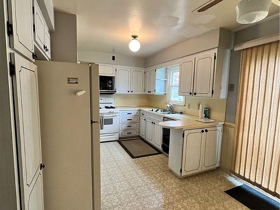 Great Wickliffe opportunity on Rush Rd. Two bedrooms on the first floor both with large closets, and a huge bedroom upstairs. Second floor bedroom has built-in drawers, selves, and a cedar closet. Nice size living room with huge picture window that lets in an abondance of naturel light. Eat-in kitchen, stove, refrigerator, and microwave stay! Sliding glass doors open from the kitchen dinette giving access to the back patio, and yard. Partially finished basement with glass block windows, work room & laundry area. Solid two car garage with electric door opener. Come make this one your own!