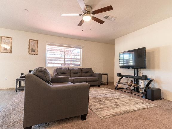 2018 build Leased solar 4 bed / 2 bath 1,574 sq ft Mountain View Estates Near Hwy-198 & shopping.Welcome to this inviting single-story home in Mountain View Estates, built in 2018 and thoughtfully cared for by its current owner. From the moment you step inside, the open layout creates an easy sense of connection between the living, dining, and kitchen areas. The flow of the home is designed for comfort and practicality, offering a central gathering space that feels natural for everyday living. Wood-look tile flooring adds appealing texture and durability throughout the busy areas of the home, establishing a warm backdrop for a variety of dcor styles and furniture arrangements. The kitchen features contemporary finishes, generous counter space, and a functional work zone that allows cooking and conversation to happen at the same time. Adjacent dining space makes mealtime simple, and the living area provides a comfortable place to unwind. The primary suite offers a quiet retreat toward the back of the home, complete with a walk-in closet and a double-sink vanity for added convenience. Three additional bedrooms provide flexibility for guest use, office setup, hobbies, or storage needs.A leased solar system supports ongoing energy cost management, and the attached two-car garage offers additional room for parking and household storage. The west-facing front of the home receives gentle afternoon light, while the backyard presents a spacious, open area ready to be shaped into a future outdoor living space, garden, play area, or entertainment zone based on individual preference. The location provides helpful proximity to everyday services. Highway 198 access is approximately five minutes away, making commuting and cross-town travel straightforward. Grocery options, restaurants, and retail centers are about ten minutes from the property, offering a convenient selection of essentials and dining choices. The home is served by the Hanford School District, and several parks and recreation areas are located within a short drive, adding opportunities for outdoor activities and community amenities. This well-kept home offers a comfortable setting, modern construction, and a practical layout in a growing area of Hanford, providing a solid foundation for a variety of living needs.
