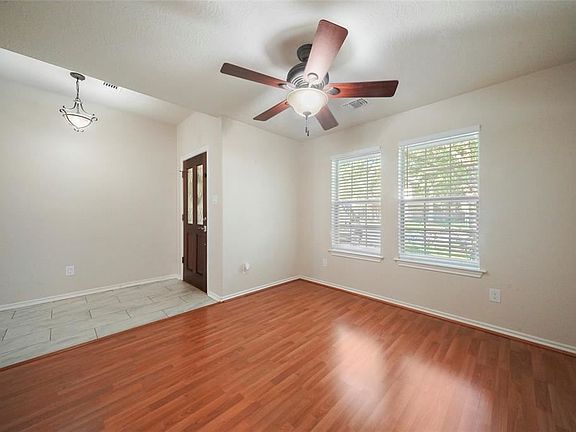 Convenient one floor living in beautiful Eagle Springs. Dedicated foyer leads to comfortable family living room with hardwood flooring, gas log fireplace and access to the patio. Open to the kitchen with seating at the bar. 42-inch stain grade cabinets complemented with stainless steel appliances and double basin sink. Updated tile flooring flows in the large, bright breakfast room and adjacent laundry room. Bedrooms on a split plan. Primary suite features jetted tub, separate shower, two basins on the vanity, linen closet and walk-in closet. Room sizes approximate. Spacious, sodded back yard with patio. ROOF SHINGLES SCHEDULED TO BE REPLACED WEEK OF JULY 3, 2023. Eagle Springs community with walking trails, sports fields, pools, splash pad, and more! In-community elementary school/Humble ISD. An opportunity not to be missed!