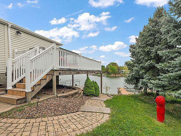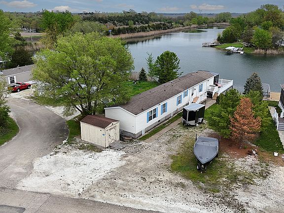 Grab the fishing pole and all the water toys! This ALL SPORTS, private lake is 1 hour from Chicago. Totally renovated in 2021, including kitchen cabinets, countertops, appliances, bathroom vanities, luxury vinyl plank flooring, toilets, sinks, and screened in room! New furnace and air conditioner in 2023. Leased land with your own mobile home. Simplified living is a best kept secret with many current lifetime residents. No high property taxes here! $900 monthly rent includes lake access, beach, club house, water, garbage, sewer & road/public area maintenance. Use as a weekend getaway or your personal residence. This unique opportunity offers waterfront access to 80 acres of clear, spring fed lakes. Waterskiing, jet skiing, fishing, swimming and more. 200+acres of dirt bike, ATV, walking & snowmobile trails to awesome hill top views. Community beach, and recreation hall. Lake Shannon is a fun community where they have events like boat parades, fishing derby's, pumpkin decorating contests, horseshoe tournaments, and more. This 3 bedroom, 2 bathroom, 1300 square foot single wide comes fully furnished. This one of a kind escape features a subterranean block storm shelter or storage area. Walk out to covered patio including pavers with large deck above. All with great water views and privacy from mature evergreens. Boat lift and two new jet ski docks included. The work and money are already invested, move-in and enjoy!