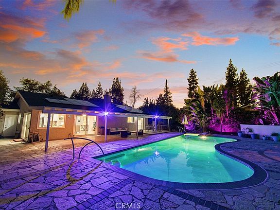 Welcome to this beautiful single-story home. Remodeled within the last couple years. Professional designer touches throughout. 4 bedroom, 3 bath home with wood like flooring, custom paint, molding, and LED, recessed lighting. Open floor plan with great room, gas, fireplace, & dining area. The kitchen has a breakfast eating area, custom cabinets, quartz stone countertops, stainless steel appliances, and the dark handles and fixtures, offset the brick backsplash for a unique modern farmhouse look. All three bathrooms completely remodeled. The extra large primary bedroom has a walk in closet, built, ins and overlooks the beautiful backyard. One bedroom is at the other end of the house, which has its own bathroom and could be used for an in-law’s suite. All of this and on a 12,000 Sq. Ft. lot. Beautiful pool/spa, covered patio, waterfall, custom lighting, & fruit trees. Plus, energy saving solar panels (leased and buyer to assume). An Entertainers DREAM home!