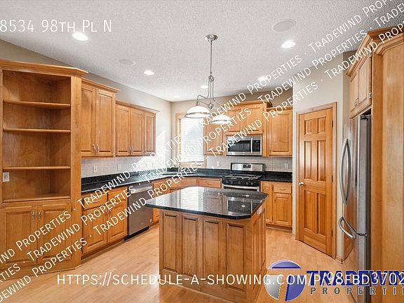 High demand Maple Grove two story home for rent amongst luxury homes. Large 5 bedroom, 3 bath home offering spacious master bedroom suite w/2 walk-in closets & private full bath. 4 beds upper level and main floor BR. Home offers hardwood floors, open floor plan, gas fireplace, center island kitchen w/pantry, main floor office, formal dining room and bonus room off deck. Extraordinary storage space or unfinished bonus area in expansive basement. Available now 12 or 24 month lease. Tenant pays all utilities (water/sewer, trash, gas, and electric) and tenant responsible for snow/lawn care. No pets allowed. Application fee:$45/adult. Information deemed reliable but not guaranteed. Renter insurance required. Section 8 not approved.