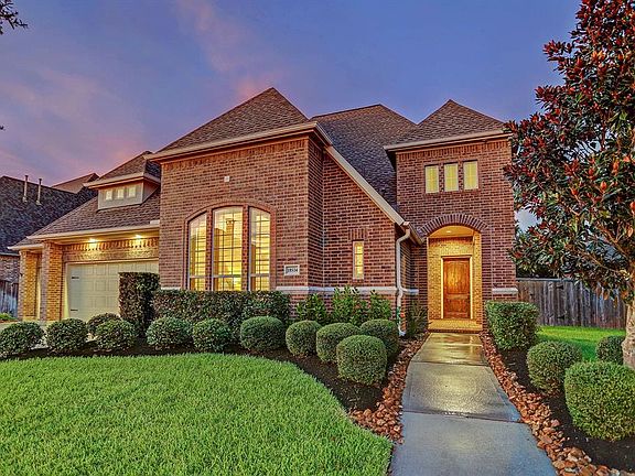 Located in a gated, luxurious resort style community featuring lakeside living, miles of scenic jogging trails and community pool, this home has been completely upgraded.Wonderful single story living (with media room, craft area and half bath up) in a better than new home. Gorgeous gourmet kitchen is open to living room and features double oven, 5 burner gas cook top, 42" cabinets and sweeping island (both refrigerator and wine refrigerator are included). Lovely home office, split floor plan, large master suite with sumptuous en suite (huge walk in shower), adjacent sitting area, large walk in closet and direct access to laundry room. Home also features security system with outdoor cameras and has surround sound speaker system.Back has lovely covered patio and there is plenty of room for a pool. Minutes from Exxon Campus, The Woodlands and an easy commute to IAH or town. Truly move in ready with thoughtful, beautiful design choices throughout.