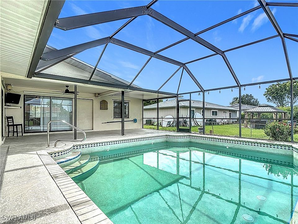 LARGE 3 BEDROOM 2 BATH POOL HOME WITH A HUGE RARE BONUS ROOM THAT CAN BE USED AS A MASTER BEDROOM OR MEDIA ROOM (WAS ADDED IN 2004) THIS HOUSE HAS A COURTYARD STYLE FEEL AND WAS RECENTLY RENOVATED THROUGHOUT.THERE IS PLENTY OF ROOM FOR BOAT IN DRIVEWAY AND POSSIBLE ALONG THE NORTH SIDE OF THE HOUSE.KITCHEN FEATURES INCLUDE STAINLESS STEEL APPLIANCES AND GRANITE COUNTER TOPS.NEW ROOF WAS INSTALLED IN 2022.CLOSE TO FGCU,SHOPPING AND MORE!