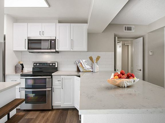 - Exterior features: BBQ/Picnic Area, Breakfast Bar, Lush Landscaping, Multiple Water Features, Pictures may not be of exact apartment home, Private Balconies and Patios, Public Parks Nearby, Quartz Countertops in Select Homes, Stainless Steel Appliances in Select Homes