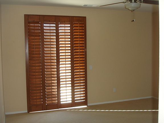 Hardwood floors, plantation shutters, ceiling fans a very spacious kitchen with large island, family room and tiled fireplace, formal living room and formal dining room. The master bedroom suite has a sliding door with plantation shutters and opens up to the back patio. Lots of closet space. And a three car garage.