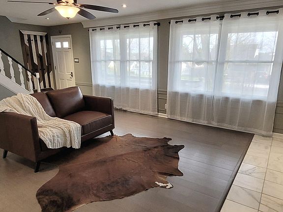 Welcome Home to this Beautifully Renovated Cape that embraces Old World Charm while maintaining Modern Amenities! New Clean, Bright & White Kitchen Boasting Granite Counters, Soft-close Cabinetry, Upgraded Stainless Steel LG Appliances, Deep Farmhouse-style Sink, 5-Burner Gas Stove, Custom Shelving & Custom Window Seat overlooking the backyard. Hanging Pot Rack & LG Double-sided Fridge included! Oversized Family Room presents Stone Fireplace with Electric Insert, Wainscoting & Crown Molding Trim, Bamboo Flooring & an entire Front Wall of Windows. Formal Dining Room, with Custom Light Fixture & Custom Shelving, flows openly between Family Room & Kitchen & opens onto the Backyard Porch. Main Floor Laundry featuring more Custom Shelving and hidden from plain sight via Sliding Barn Door. This home features 4 Bedrooms, Two on each Floor; and 2 Newly Remodeled Bathrooms, which include a Half Bath on the 2nd floor, and a Full Bath available for Main Floor living. Each Bedroom upgraded with Ceiling Fans, Stylish Light Fixtures, and Dimmers. Vinyl Fencing provides Privacy in the Backyard, with Gated access to the Front. Partial Basement accessible with outside entry. Pack your Bags - You won't want to leave!