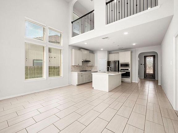 Awesome 2 story, 5 bedroom, 4 bath home with a large gameroom is located in the master planned community of Veranda. This home was designed and built to meet the demands of a busy family with an open floor plan with a dining area and family room that are open to the kitchen. Soaring ceilings and a wall of windows with double doors lead to the covered backyard patio. The kitchen boasts neutral tile that runs throughout the main rooms with quartz countertops, pretty coordinating backsplash and stainless appliances. The primary bedroom is large with a luxurious ensuite bath with Jacuzzi tub and separate glass shower. Another spacious bedroom is also located on the first floor. Upstairs is a large gameroom and 3 additional bedrooms and two baths. The backyard is fully fenced and offers tons of greenspace. Veranda is a beautiful, master planned community that offers great amenities including a state-of-the-art recreation center with pools, parks and trails. Welcome home!