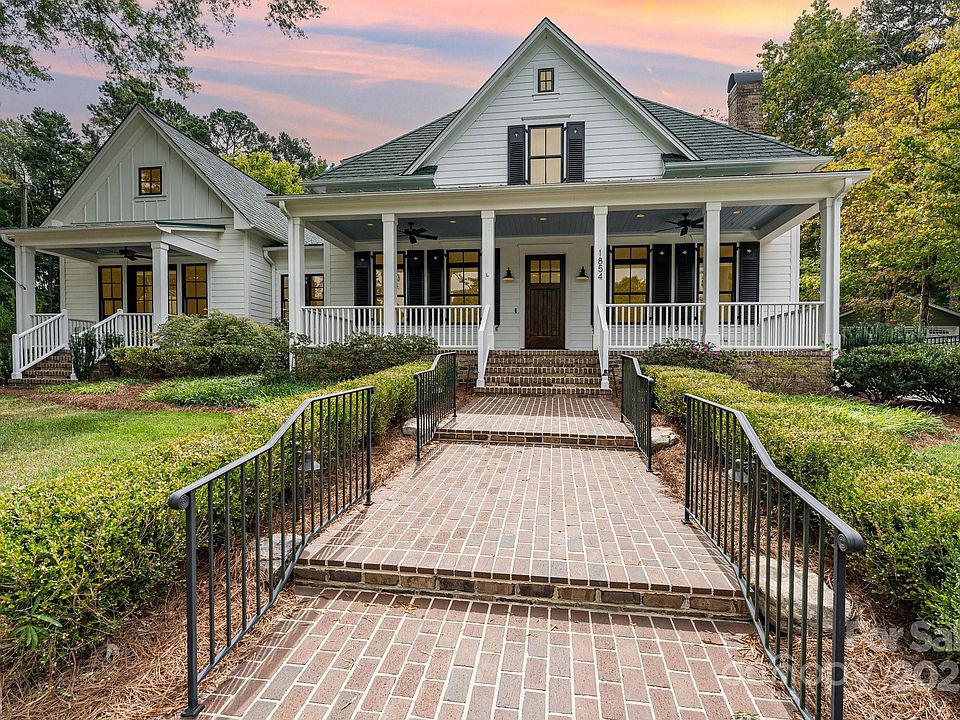 Custom-built in 2017, this single-owner Buena Vista home blends timeless design with livability. The main level offers two suites: the front primary with sitting area, powder room, dual vanities, two walk-in closets, porch access, and laundry; and a rear suite with walk-in shower, tub, and nearby laundry. Upstairs has a third en suite, Upstairs open area with full bath-easily convertible to an additional bedroom, and cedar storage. The kitchen features premium finishes, butler’s pantry, and morning bar with Sub-Zero drawers, opening to dining and family spaces. The living room offers built-ins, gas fireplace, and cocktail alcove, while walnut hardwoods extend throughout. The family room opens to a courtyard with stone waterfall. A gated drive leads to a four-car garage with finished suite, full bath, and expansion space. The carriage house adds kitchenette, half bath, epoxy floors, and storage—ideal for workshop, studio, or guest retreat. Outdoor living includes a circle drive, dual covered porches, screened porch with fireplace, and courtyard.