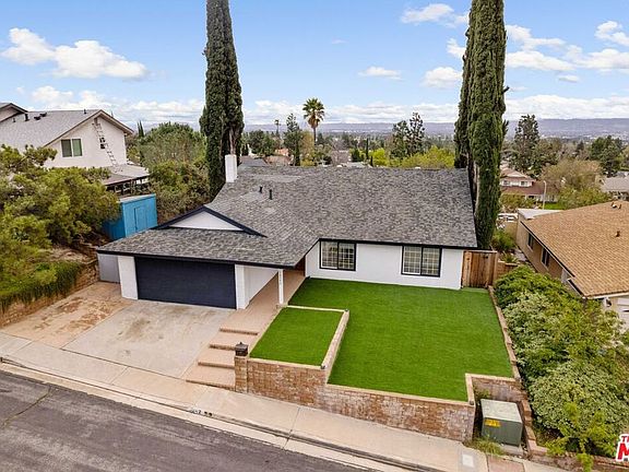 Nestled in the prestigious Porter Ranch neighborhood, this 4-bedroom, 2-bathroom home has been masterfully remodeled to embody modern elegance. Upon entering, the open floor plan enchants with wide-plank flooring and a neutral palette, accentuating the spaciousness and the abundant natural light. The living room, centered around a custom stone fireplace, promises warmth and ambiance, making it a perfect space for refined comfort. The gourmet kitchen, a model of contemporary design, features pristine white cabinetry and an inviting central island with a waterfall countertop, creating an ideal setting for culinary creations. The primary bedroom is a luxurious retreat, complete with an ensuite that boasts a brand-new jetted tub for a spa-like experience at home. Step outside to the manicured garden and patio area, where the breathtaking views of the San Fernando Valley take center stage. This serene outdoor space is perfect for intimate gatherings or enjoying the peaceful hillside breeze. It is worth noting that this home is one of the few on Dylan St that offers such stunning vistas, making it a truly unique find. Adding to the allure of this exquisite home is its location in an area known for having some of the best schools, including Beckford Charter for Enriched Studies, Nobel Charter Middle School, and Granada Hills Charter High Schoolall award-winning institutions recognized for their academic excellence. This property offers not just a luxurious living space but also an opportunity for an exceptional educational experience for families.