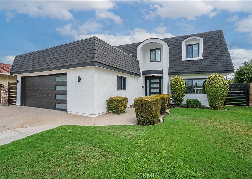 Welcome to this stunning 2-story masterpiece in the prestigious City of Cerritos. Fully renovated in 2025, this 4-bedroom, 2.5-bath + bonus room home blends modern elegance with everyday comfort. The heart of the home is a designer kitchen featuring top-of-the-line Z-Line stainless steel appliances, granite countertops, custom cabinetry, a walk-in pantry, and a stylish island perfect for gatherings. The open floor plan flows seamlessly into the spacious family room with fireplace, formal dining room, and living room — all enhanced with recessed lighting, new flooring throughout, and Bluetooth surround sound on the main level. Upstairs, the luxurious primary suite awaits, complete with two oversized closets and a spa-inspired bathroom offering dual sinks, a soaking tub, and an expansive tiled shower. Each secondary bedroom is generously sized, with elegant bathrooms illuminated by skylights for natural light. Step through double doors into your private backyard oasis — an updated covered patio with ceiling fan and string lighting, perfect for morning coffee or evening entertaining, overlooking lush landscaping. Additional highlights include: GA -Timberline shingle roof -Custom finishes throughout -Corner lot privacy -No HOA fees -Community tennis court & playground just steps away. This rare Cerritos gem offers the perfect blend of location, upgrades, and lifestyle. With so many custom touches, it truly must be seen to be appreciated. Don’t wait — this dream home won’t last long!