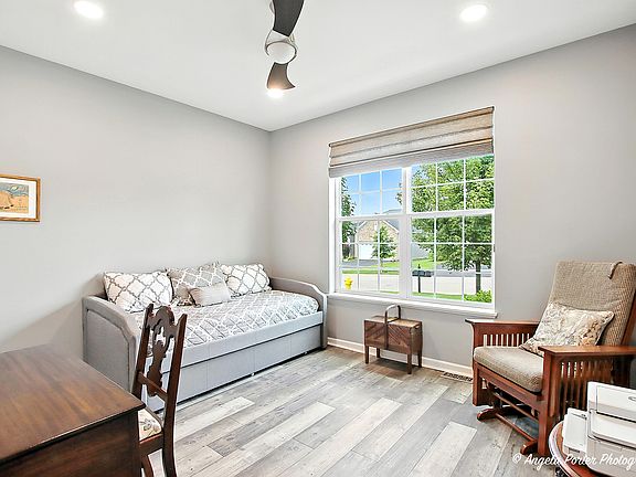 STUNNING 3 BEDS / 2 BATHS OPEN-CONCEPT RANCH WITH 3-CAR GARAGE IN ANDARE AT REMINGTON POINTE NORTH! Welcome to this sought-after Ridgefield Model, perfectly designed for comfort and style in a desirable low-maintenance 55+ community. From the moment you step into the impressive foyer with coffered ceilings and gorgeous engineered hardwood floors, you'll feel the elegance throughout this home. The chef-inspired kitchen is a true centerpiece, featuring quartz countertops, stainless steel appliances, custom cabinetry, designer light fixtures, and a massive island overlooking the vaulted great room with a gas fireplace. A sun/rec room adds nearly 500 sq. ft. of extra living space, ideal for relaxing or entertaining. Step outside to your expanded paver patio with a sunpowered awning, perfect for enjoying your beautifully landscaped yard. The luxurious primary suite offers tray ceilings, a spa-like en-suite with dual vanities, walk-in shower, and oversized walk-in closet. Bedrooms 2 and 3 are generously sized and each feature walk-in closets. Additional highlights include owned solar panels for low energy costs, in-ground sprinkler system, and professional landscaping. This home's prime location is just steps from the community clubhouse, which offers a fitness center, activity rooms, kitchen, and office space. Outdoors, enjoy a fire pit, walking/biking paths, bocce ball, pickleball/tennis courts, and beautifully maintained common areas. The low-maintenance lifestyle includes lawn care and snow removal-simply move in and start enjoying everything this vibrant community has to offer. Schedule your private showing today!