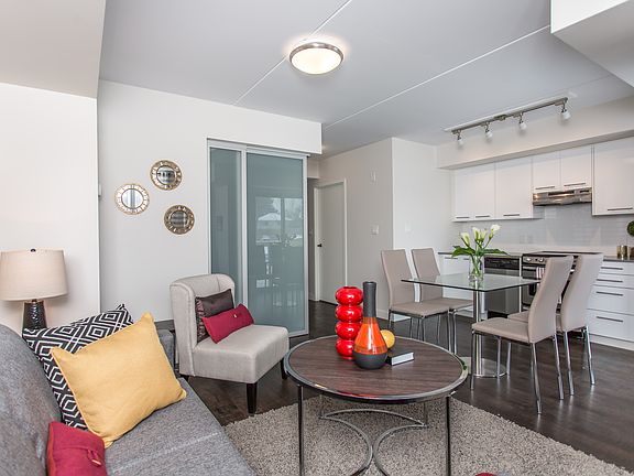Your home at Bridgewood Suites features private balconies and a 4,800 sq. ft. indoor and outdoor amenity space that includes fully-equipped fitness facilities, a multipurpose room, and a sparkling outdoor pool. Your dog can enjoy workouts on-site at the 4,000 sq. ft. enclosed dog run. Enjoy the convenience of bike racks, bike lockers, an elevator, visitor parking and dedicated underground parking.