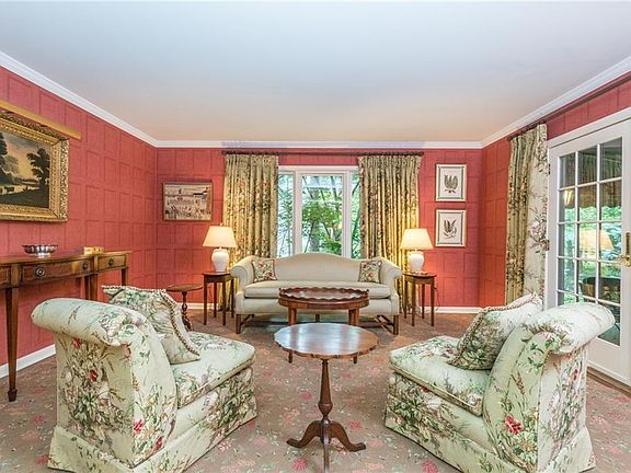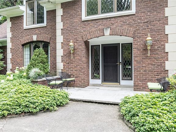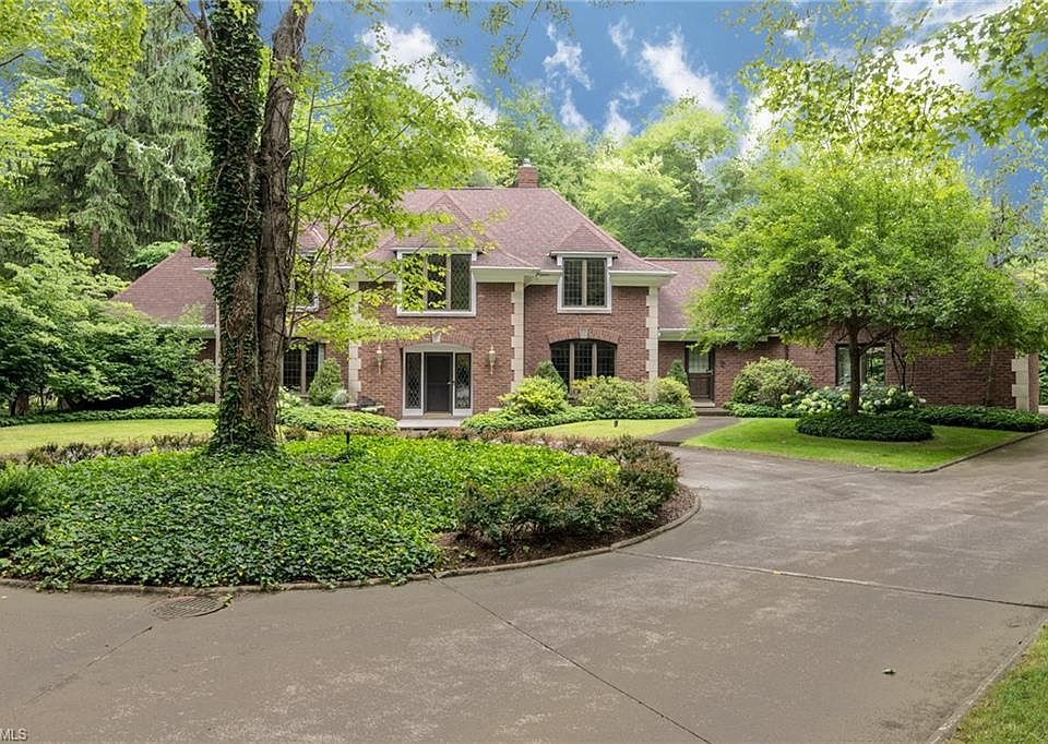 Beautiful brick Georgian on 2.5 acres in charming Gates Mills. This home feels like a retreat w/the privacy of the landscaping & access to outdoor patios from many rooms. Pull around circular drive & enter through the unique carved wooden entry door flanked by leaded windows letting natural light in. Stately 2 story foyer featuring hardwood floors & decorative mouldings. Centrally located & inviting 1st floor Family room is where you will live! Family room boasts French glass doors off foyer, beamed ceiling, gas fireplace, wet bar, surround sound theatre system, door to patio & built-ins. The gracious living room is adjacent to family room & has French doors to covered garden patio. The kitchen features a spacious eat-in area that is surrounded by floor to ceiling windows, door to patio, granite countertops, Sub-zero fridge and Wolf range, white, crisp cabinets, decorative tile backsplash, cooktop w/vent hood, adjacent pantry/mud room w/built-ins, convenient desk area. Formal dining room shines with architectural design of the trayed ceiling & built-in buffet. Master suite on 1st with en-suite bath including 2 sinks, separate shower, tub, dressing area & linen closet. 3 bedrooms, office & large full bath w/separate commode/shower room on 2nd. 2 powder rooms on 1st, Laundry room on 1st. 3 zone, 6 room (inside & out) sound system, 10 zone underground sprinkler system, security system. This floor plan flows beautifully and has storage galore to keep every room organized.