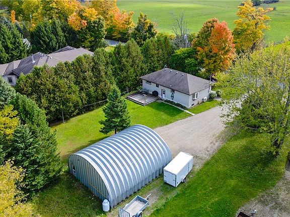 RURAL LIVING MEETS CONVENIENCE! If you’ve been dreaming of a peaceful, country lifestyle, look no further than 1855 Concession 8. Nestled on a picturesque .468-acre mature lot in the highly sought-after community of Flamborough, this property offers the perfect blend of tranquility and convenience. With its central location between Brantford, Hamilton, Burlington & Cambridge, and easy access to both Highway 8 and the 403, you’ll enjoy the best of rural living while remaining close to all essential amenities. A short stroll brings you to the charming hamlet of Kirkwall, adding a touch of small-town charm to your everyday life. This bungalow, featuring 1431 sqft of living space, invites you to step into a bright, open atmosphere including the partially finished basement with room to expand your living space or storage. The cozy yet spacious main floor living room flows seamlessly into the dining nook and a stylishly renovated kitchen, featuring ample cabinetry, a breakfast bar peninsula, and included appliances. The west wing of the home houses 2 bedrooms and a versatile multi-purpose room currently used as a walk-in closet– perhaps perfect for a future home office. The updated 4pc bathroom completed this level. A true standout of this property is the impressive 30'x36' heated and insulated Quonset "Dream" shop/garage, equipped with a propane tube heater, concrete floors, electricity, an insulated roll-up door, a storage mezzanine with an electric boom crane– perfect for the handyman or entrepreneur. Notable extras include a propane furnace and a mini-split AC system (added in 2024), vinyl windows throughout, a reliable well with UV water purification, a septic system, and an oversized driveway that ensures ample parking for you and your guests. Homes like this – where rural charm meets modern functionality – are rare in this desirable location.