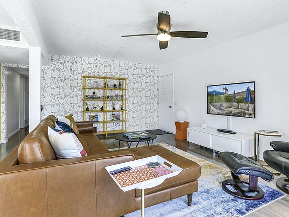 Nicely furnished 2 bedroom, 2 bath single level condo in beautifully landscaped 30 unit complex. Pool, spa and private patio are steps away. Sunrise Park and all its amenities are across the street. Grocery and other shopping nearby. Close but far enough away from the Palm Springs downtown with all its restaurants, museums, and entertainment attractions. 6-9 month lease available. Owner pays for water and internet. Tenant pays for gas and electric. No smoking inside unit. Small pet allowed. One reserved, covered parking. Additional parking on premises.
