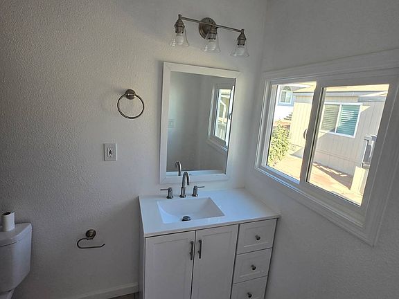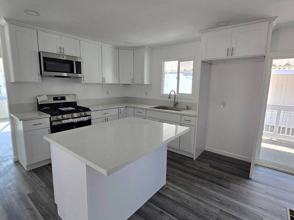 Come and see this total refurbed 3 Bed/2 Bath home with new laminate flooring through out, new vanities, step in shower, new kitchen cabinets with build in microwave, new stainless steel appliances, island, paint inside and out and so much more. Located in a nice all age community close to shopping and freeway. Call today !! The space rent is lower than usual for this community!!
