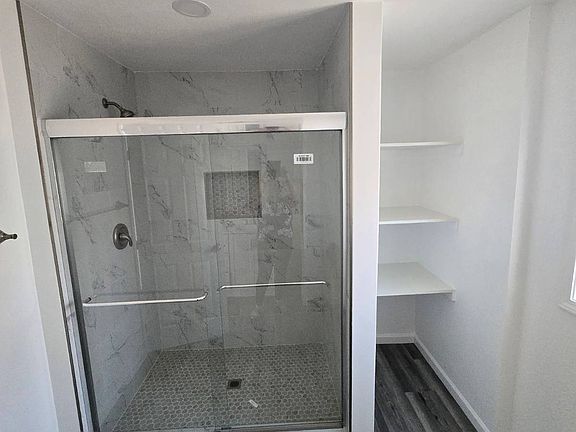 New laminate flooringStainless steel appliancesStep in showerNew kitchen cabinetsNew vanities